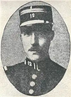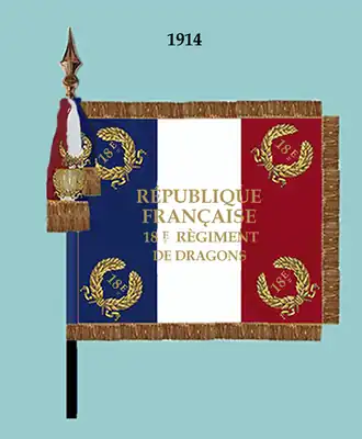 Am 8. September wurden die Reste der 8. Kavalleriedivision[note 14] nach Crépy-en-Valois beordert, um ein Unternehmen hinter den deutschen Linien in den Wäldern von Compiègne und Villers-Cotterêts durchzuführen.[44] Während dieser Unternehmung führte eine Escadron des „16e régiment de dragons“ am Abend des 11. September einen Angriff auf eine Kraftwagenkolonne aus, die Flugzeuge auf die Höhe von Mortefontaine (Aisne) transportierte. Zuerst eröffneten zwei abgesessene Züge das Feuer, dann attackierte ein berittener Zug, wurde aber durch das Feuer aus einem Maschinengewehr abgewehrt.[45][note 15] Am 10. September konnten zwei Reiter des „3e régiment de hussards“ bei Mont-l’Évêque 15 versprengte Infanteristen des Thüringischen Reserve-Infanterieregiments Nr. 94 zur Aufgabe zwingen und dabei die Fahne des 2. Bataillons erbeuten.[note 16] Der Capitaine Sonnois und der Maréchal-des-logis Noury machten dabei vier Gefangene und brachten die erbeutete Fahne nach Senlis.[46]