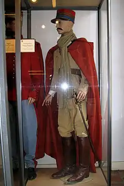 Im Jahre 1900 trug die gesamte schwere Kavallerie Uniformröcke aus dunkelblauem Tuch, Kragen und Paspelierung in Türkischrot (garance) – bei zwei Dragonerregimentern jedoch in Weiß. Die Hosen waren ebenfalls türkischrot mit dunkelblauen Passepoils, die Mäntel in bläulichem Eisengrau.[10] Die Hosen der leichten Kavallerie waren ebenfalls türkischrot, aber in einem etwas dunkleren Ton gehalten. Die Waffenröcke waren hellblau, die Dolmane wurden ab 1900 schrittweise abgeschafft, da sie zu auffällig waren und im Gelände ein zu leichtes Ziel boten. Man begann mit einer Uniform zu experimentieren, die diesen Makel kompensieren würde. Als erste Einheit wurde 1911 das „12e régiment de chasseurs à cheval“ in Saint-Mihiel mit einem resedagrünen Waffenrock ausgestattet. Die Husaren und Jäger zu Pferde unterschieden sich fortan durch die Farbe der Kragen und der Ärmelpatten – Türkischrot für die Jäger und Dunkelblau für die Husaren.