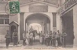 Eingang zum „Quartier de cavalerie“ (Kavalleriekaserne) des „20e régiment de chasseurs à cheval“ in Vendôme. Dieses Regiment war der 7. Kavalleriedivision zugeteilt.[note 5]Kavalleriekolonne zu Beginn des 20. Jahrhunderts im „Großen Manöver“
