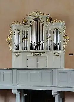 Die barocke Grüneberg-Orgel mit 13 Registern auf Manual und Pedal ist die größte der erhalten gebliebenen Orgeln Johann Wilhelm Grünebergs. Das Instrument hat keine Koppeln.[2] Die Disposition lautet:[3]