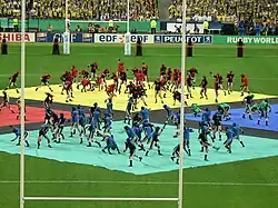 Drei Teilverbände sind grenzüberschreitend: Der Ligue régionale Auvergne-Rhône-Alpes de rugby gehört auch ein Verein aus der Schweiz an,[8] während Andorra und Monaco von der Ligue régionale Occitanie de rugby bzw. der Ligue régionale Provence Alpes Côte d'Azur de rugby mitbetreut werden. Für die Organisation des professionellen Spielbetriebs ist die Ligue nationale de rugby zuständig; sie beaufsichtigt die beiden obersten Ligen, die Top 14 mit 14 Mannschaften und die Pro D2 mit 16 Mannschaften.[9] Der nationalen Meisterschaft übergeordnet sind die zusammen mit Mannschaften aus England, Irland, Italien, Schottland und Wales ausgetragenen internationalen Pokalwettbewerbe European Rugby Champions Cup und EPCR Challenge Cup.
