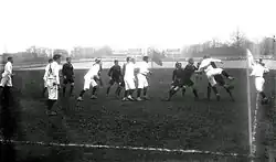 Der 1890 gegründete Sportverband Union des sociétés françaises de sports athlétiques (USFSA), der damals mehrere Sportarten umfasste, veranstaltete 1892 die erste Rugby-Meisterschaft (Vereine von außerhalb der Hauptstadtregion Île-de-France durften jedoch erst ab 1898 teilnehmen).[15] Ein Jahr später stellte die USFSA eine aus Spielern der Pariser Vereine Racing Club de France und Stade Français zusammengesetzte nationale Auswahl zusammen, die zu Spielen gegen englische Klubs reiste.[17] Bei den Olympischen Sommerspielen 1900 in Paris fand auch ein Rugbyturnier statt und die USFSA stellte erneut eine Auswahlmannschaft zusammen. Nach Siegen gegen Großbritannien (27:8; vertreten durch die Moseley Wanderers) und Deutschland (27:17; vertreten durch den SC Frankfurt 1880) gewann Frankreich die Goldmedaille.[18] Das damalige französische Team wird jedoch nicht als offizielle Nationalmannschaft betrachtet.[15]