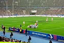Wie in den Rugbynationen Argentinien, Australien, Neuseeland und Südafrika gibt es in Frankreich kein offizielles „Nationalstadion“, vielmehr absolviert die französische Rugbymannschaft seit jeher in zahlreichen verschiedenen Orten Frankreichs ihre Heimspiele. Partien im Rahmen von Six Nations und dessen Vorgängerturniere werden jedoch fast ausschließlich im Großraum Paris ausgetragen. Früher waren dies das Stade Olympique Yves-du-Manoir in Colombes und der Parc des Princes in der Hauptstadt selbst.[110] Seitdem die französische Rugbymannschaft Ende 1997 den Parc des Princes verließ, dient ihnen das Stade de France in Saint-Denis als Hauptspielstätte.[111]