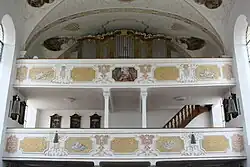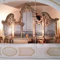 II/P | 16 | Im Gehäuse von 1783 von Anton Bayr. Mehrfach umgebaut und verändert. Eingelagert erhalten. 1985 Neubau im historischen Gehäuse durch Manfred Mathis. → Orgel |