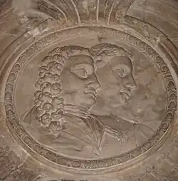 Franz Pleickard Ulner von Dieburg heiratete 1713 Maria Theresia Josepha von Haxthausen (1692–1731),[3] Tochter des kurpfälzischen Generals und kaiserlichen Feldmarschallleutnants Johann Raab von Haxthausen († 1733 in Mainz).[4][5][6] Ihr setzte er in der Weinheimer Laurentiuskirche ein Epitaph, das beide Porträtmedaillons aufweist. Es wurde 1911, beim Neubau der heutigen Kirche, aus dem Vorgängerbau übertragen. Die lateinische Grabinschrift lautet übersetzt: