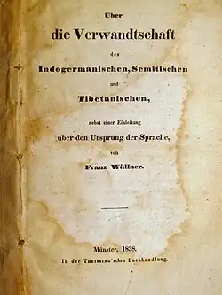 Titelblatt der Originalausgabe von: Über die Verwandtschaft des Indogermanischen, Semitischen und Tibetanischen…Münster 1838
