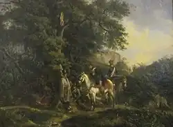 • Jägerfeldwache und Husarenpatrouille. 1822, Öl auf Leinwand, ca. 48 × 60 cm, Heeresgeschichtliches Museum, Wien