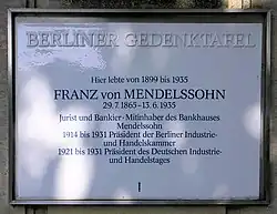- ↑ Thomas Hertz: Die Industrie- und Handelskammer zu Berlin. Ein Beitrag zur Wirtschaftsgeschichte Berlins. de Gruyter, Berlin und New York 2008, ISBN 978-3-11-020669-2. (Kapitel III: Die Ära von Mendelssohn (S. 24–41))
