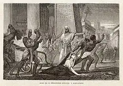 Die mittelalterliche Philosophie reicht vom Untergang des Weströmischen Reiches im 5. Jahrhundert nach Christus bis zur Renaissance im 16. Hypatia (350 - 370 bis 415 n. Chr.) war eine griechische Mathematikerin, Astronomin und Philosophin in Ägypten, das damals zum Oströmischen Reich gehörte. Sie war die Leiterin der neuplatonischen Schule in Alexandria, wo sie Philosophie und Astronomie lehrte.[10][11]