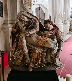 Das Vesperbild von 1640 zeigt die heilige Magdalena. Mehrere Votivtafeln des 18. Jahrhunderts mit den Pestpatronen Rochus, Sebastian und Darstellungen von Wasserburger Bürgern von 1772 sind weiter zu nennen. Ein achteckiges Weihwasserbecken aus Rotmarmor stammt aus der Zeit um 1520.