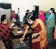1937 trat der Government of India Act, der 1935 verabschiedet worden war, in Kraft, der das Stimmrecht für alphabetisierte Frauen, die ein Einkommen hatten und Steuern zahlten, enthielt.[12] Als Pakistan 1947 ein unabhängiges Herrschaftsgebiet geworden war, wurde dieses Recht bestätigt und auch auf Bangladesch, damals Ostpakistan, angewendet. 1956, als Bangladesch noch Teil von Pakistan war, erhielten Frauen das allgemeine Wahlrecht.[12]