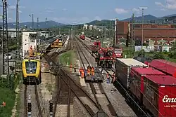 - ↑ Fabian Vögtle: Arbeiten nach Entgleisung. Die Ursache des Unfalls beim Rola-Terminal ist noch unklar. In: Badische Zeitung. 2. Mai 2018 (badische-zeitung.de [abgerufen am 12. März 2024]).