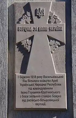 Am 1. März 1918 befreiten die Freien Kosaken unter der Führung des Offiziers Iwan Horemyka-Kruptschynskyj Bojarka von der russisch-bolschewistischen Besatzung und die Flagge der Ukraine wurde über dem Bahnhof der Stadt gehisst. Sie marschierten darauf nach Kiew. Am selben Tag befreiten die Ukrainer die Hauptstadt von der russischen Besatzung.[8][9] Im selben Monat besiegte die Division der Freien Kosaken von Swenyhorodka die 8. Armee, die die Städte Birsula und Wapnjarka besetzte, und die 8.000 Mann starke Einheit unter dem Kommando Michail Murawjows.[3] Wladimir Antonow-Owsejenko kommentierte den Widerstand der Freien Kosaken der Region Swenyhorodka gegen den bolschewistischen Angriff folgendermaßen: