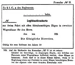 - ↑ "Reglement, die freien Fahrten auf der Eisenbahn betreffend"