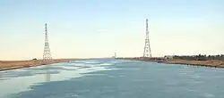 Die Freileitungskreuzung des Sueskanals besteht aus zwei 221 Meter hohen, als Stahlfachwerkkonstruktionen ausgeführten Tragmasten etwa acht Kilometer nördlich der Mündung des Sueskanals in Port Taufiq bei Sues. Sie sind mit drei Traversen für die Aufnahme von sechs Leiterseilen für 500 kV ausgestattet und wurden 1998 errichtet.[1] Außerdem besitzen diese Masten unterhalb der Traversen mit den Leiterseilen noch eine vierte Traverse, um herabstürzende Leiterseile im Fall eines Isolatorbruchs aufzufangen.[1]