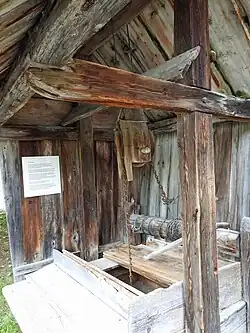 | Ehemaliges Eingangsgebäude | Bauform und Dachstuhl stammen von der Thürlmühle aus Weilheim | 1976 |