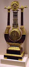 Erste Uhren sind schon aus der Zeit Ludwigs XVI. bekannt. Die Aufhängung wurde meistens in Form einer antiken Lyra hergestellt. Die temperaturkompensierte Pendelstange stellt gleichzeitig die Saiten des altgriechischen Musikinstruments dar. Erst im 19. Jahrhundert breitete sich dieser Freischwingertypus in verschiedenen anderen Formen aus.[3]