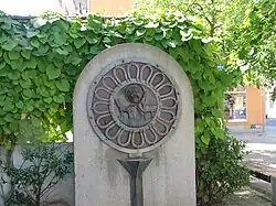 Der Schmied und Kunstschlosser Richard Rothenberger wurde 1925 damit beauftragt, einen künstlerischen Beitrag zum neuen Platz zu liefern. Er erschuf ein rundes, von 16 Hufeisen umrahmtes Kupferrelief. Es wird ein Pferd samt seinen Hinterlassenschaften vor der alten Schmiede dargestellt. Darüber befindet sich der Kopf eines Müllers der Potschappler Hofemühle mit von dem Gestank verzogenem Gesicht und vorstehender Nase, aus der Wasser tröpfelt. Dieser Nase nach erhielt der Brunnen seinen Namen.