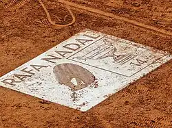 Am 25. Mai 2025 fand zu Beginn der French Open 2025 eine Abschiedsfeier für den vierzehnfachen French-Open-Sieger Rafael Nadal auf dem Court Philippe Chatrier statt. Im Stadion trugen 15.000 Zuschauer rote T-Shirts mit seinem Namen. Einer der Höhepunkte war die „Enthüllung“ einer bleibenden Gedenktafel im Center Court mit dem Fußabdruck von Nadal, einer Abbildung des Coupe des Mousquetaires und der Zahl 14 für den Rekord von 14 Siegertiteln bei den French Open. Die Tafel war zunächst unter dem roten Sand verborgen, die dann freigekehrt wurde. Sie befindet sich auf Netzhöhe im Boden, gegenüber dem Schiedsrichterstuhl. Roger Federer, Novak Đoković und Andy Murray gratulierten ihm persönlich, neben der Turnierdirektorin Amélie Mauresmo und dem Präsidenten des Französischen Tennisverbands Gilles Moretton.[18][19]