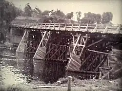 Am 9. September 1939, kurz nach dem Ausbruch des Zweiten Weltkriegs, sprengte das französische Militär die Brücke, um für den Fall eines deutschen Angriffs zwischen Westwall und Maginot-Linie die Saarüberquerung zu erschweren. Als Deutschland ein halbes Jahr später tatsächlich Frankreich angriff, errichteten Wehrmachtsangehörige an dieser Stelle eine hölzerne Behelfsbrücke, die sie nach der alliierten Landung in Frankreich in der zweiten Jahreshälfte 1944 gleichfalls wieder zerstörten.[4]