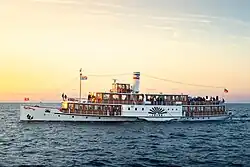 Auffallend am heutigen Aussehen sind die weitgehend hölzernen Aufbauten, die eineinhalb geschlossenen Decks und eine vergoldete Bugverzierung.