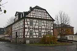 Die Bedeckung bildet ein Krüppelwalmdach mit symmetrischen Aufbauten wie Zwerchhaus und Gaube. Den Zugang hatte eine Freitreppe von der Friedrichstraße her gebildet. Sie wurde später entfernt, da sie den Verkehr behinderte. Heute kommt man von der Rückseite von der dortigen Freifläche in das Haus.