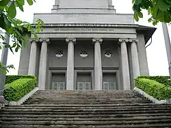 Über dem Portal, zu dem eine monumentale Freitreppe führt, steht ein Zitat aus Jesaja 32, 17: «Der Gerechtigkeit Frucht wird Friede sein». Der Berner Maler und Kupferstecher Egbert Moehsnang gestaltete im kleinen Saal zwei Rundbogen. Um den neoklassizistischen Kirchenbau herum entstand 1916 bis 1930 eine Überbauung im Heimatstil.