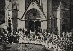 Dennoch wurde zunächst statt der Kirche im Auftrag des Vereins für Innere Mission an der nahe gelegenen Konenstraße ein Vereinshaus nach Entwurf des Düsseldorfer Architekten Hermann vom Endt gebaut, das 1896 fertiggestellt und für drei Jahre auch als provisorische Gottesdienststätte genutzt wurde.