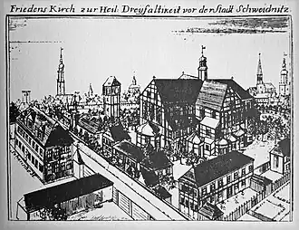 - ↑ Klaus Goldmann: Portraits der Klöster und Kirchen. Friedenskirche zu Schweidnitz (Świdnica). In: Kulturwerk Schlesien. Archiviert vom (nicht mehr online verfügbar) am 21. April 2020; abgerufen am 13. Oktober 2020.