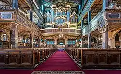 Die prächtige Ausstattung ist im Stil des Barocks gehalten. Für die Malereien von 1696 an der Decke des Hauptschiffs, der Seitenschiffe und des Transsepts waren Christoph Kalicki und Christian Süßenbach verantwortlich. Auch die Emporen sind reich bemalt und geschmückt. Weitere Ausstattungsstücke sind u. a.: