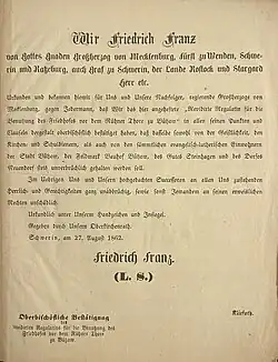 - ↑ Friedrich Franz I.: Häuser und Brand-Societäts-Cataster. In: Herzoglich-Mecklenburg Schwerinscher Staats-Kalender. 1811.