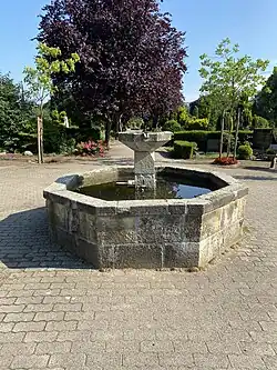 Von der Kapelle aus führt ein gepflasterter Weg in Richtung Norden, der von zahlreichen, für diesen Friedhof typischen Blutbuchen gesäumt wird. An diesem Weg steht in Sichtweite zur Kapelle ein achteckiger Sandsteinbrunnen. Die einzelnen Grabreihen sind zum großen Teil durch Eibenhecken getrennt. An verschiedenen Grabstätten finden sich Infotafeln, die über das Leben des oder der Verstorbenen berichten. Neben Wahl- und Urnengräbern gibt es eine Urnengemeinschaftsanlage und ein anonymes Urnenfeld.