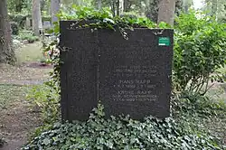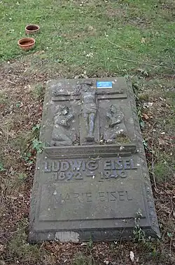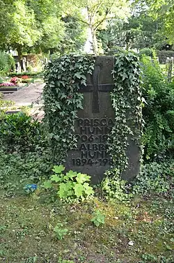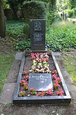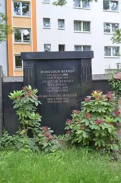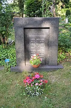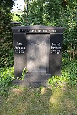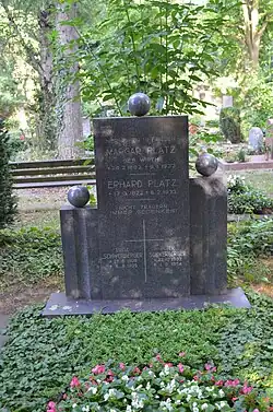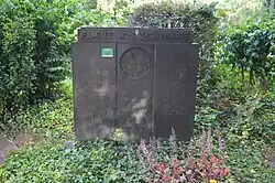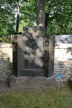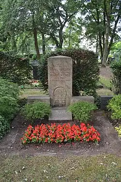 E/148 | Richter | 1931 | Johann Tempel | Dreiteilige Stele aus mattgeschliffenem Diabas. Das schmale überhöhte Mittelteil wird durch ein Relief in Anlehnung an die Orpheussage hervorgehoben. Das Denkmal war im Jahr 2015 abgeräumt. |