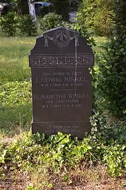 | D/331-332 | Kinkel | 1910 | Stele aus geschliffenem schwarzen Granit mit mehrfach gebrochener Giebelkontur und Schmuckgravur im Jugendstil | ||