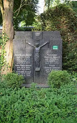 | A/50-51 | Elsenheimer | 1901 | Kreuzdenkmal auf hohem Schriftsockel aus poliertem schwarzen Granit. Die Figur des gekreuzigten Christus darauf besteht aus Galvanobronze. | ||