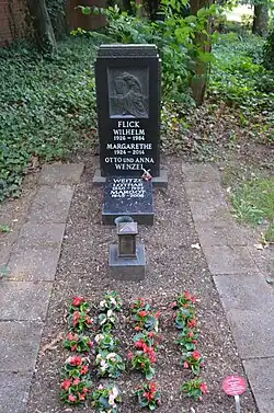 | G/59 | Flick-Wenzel | 1952 | Johann Tempel | Rechteckstele mit dem Relief einer Trauernden aus geschurtem Diabas. | |