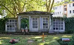 | C/150-152 | Conrad-Ries | 1914 | Neoklassizistische Ädikula zwischen Inschriftensteinen aus Kalkstein. Im Rundbogen des Giebels befindet sich ein Relief mit Kreuz und Ölzweig. | ||