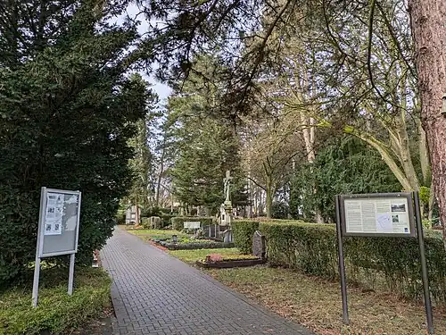 - Zweiter Weltkrieg: Gräberfelder für deutsche Soldaten sowie ein Ehrenmal für zivile Opfer des Krieges, darunter Schüler und Lehrlinge, die bei Bombenangriffen ums Leben kamen.