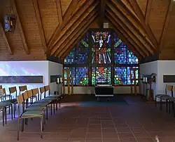 Die neue Friedhofskapelle wurde 1978 während der Erweiterung des Friedhofs angelegt und nach Plänen von Herbert Rottenspacher errichtet. Die Südwand besteht aus einem buntfarbigen Glasgemälde von Fred Hochschwarzer mit einer Darstellung der Auferstehung Christi.[1]