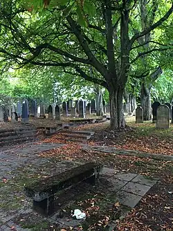 Hinter dem Tor am Steinkluppenweg liegt ein kleines Forum, von dem ein Längsweg durch den rund 875 Quadratmeter kleinen, rechteckigen Friedhof führt. Die Steine sind rituell nach Osten ausgerichtet, jedoch unterschiedlich gestaltet. Es finden sich schlichte Gedenksteine, aber auch elegante Obeliske und prächtige Ädikula-Monumente im klassizistischen Stil.[2]