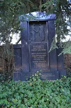 | Wagner | 1922 | Pfeilerädikula aus poliertem schwarzen Granit; eingelassen ein Relief mit dem Orpheusmotiv aus Galvanobronze, Steinmetz J. Rumpf | |
