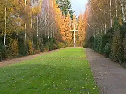 Es handelt sich um 172 Gräber von Soldaten und Flüchtlingen des Zweiten Weltkriegs im alten Teil des Friedhofs. Die hölzernen Grabkreuze wurden 1985 durch steinerne Grabkreuze ersetzt.[4] Die im Lager Pöppendorf verstorbenen hier begrabenen Flüchtlinge wurden namentlich erfasst.[5] Das hölzerne Hochkreuz ist Ort des Gedenkens am Volkstrauertag.