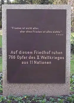 Nach Beendigung des Zweiten Weltkriegs wurde das südliche Gräberfeld würdig umgestaltet und zu Ehren der 1945 gegründeten Vereinten Nationen als Feld der Vereinten Nationen benannt. Nach 1989 erfolgte eine Sanierung des Gräberfelds. Vor dem Friedhof weist ein Gedenkstein auf die im Feld der Vereinten Nationen bestatteten Toten hin.