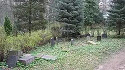 • das Sammelgrab des Anstaltsdirektors Johannes Fischer, der am 15. Mai 1945 mit seiner Familie Selbstmord beging.