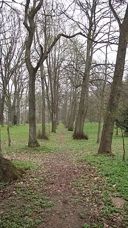 Blick durch die (ehemalige) Hauptachse des Friedhofs (2013)