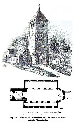 Die alte römisch-katholische Pfarrkirche St. Johannes Baptist wurde zum ersten Mal im Jahr 1131 als Besitz des Cassius-Stiftes zu Bonn erwähnt. Die bis ins 19. Jahrhundert erhaltene romanische Kirche aus dem 12. Jahrhundert war eine dreischiffige Basilika mit vorgesetztem Westturm. Die Kirche wurde im Jahr 1898 bis auf den Turm niedergelegt, als weiter nördlich eine größere neue Kirche errichtet wurde. Das Untergeschoss des Turmes wurde als Friedhofskapelle hergerichtet. Dabei wurde in die frühere Öffnung zum Langhaus im Osten eine Halbkreisapsis eingebaut.