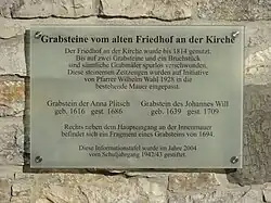 2004 stiftete der Schuljahrgang 1942/43 eine Informationstafel an der Friedhofsmauer. Der ehemalige Kirchhof ist heute mit dem Gemeindezentrum rund um die Kirche bebaut und mit Grünflächen bepflanzt.