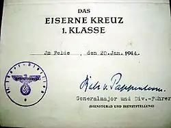 - ↑ Veit Scherzer: Ritterkreuzträger 1939–1945. Die Inhaber des Eisernen Kreuzes von Heer, Luftwaffe, Kriegsmarine, Waffen-SS, Volkssturm sowie mit Deutschland verbündete Streitkräfte nach den Unterlagen des Bundesarchivs. 2. Auflage. Scherzers Militaer-Verlag, Ranis/Jena 2007, ISBN 978-3-938845-17-2, S. 609.