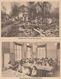 In der Kaiserin-Augusta-Straße 37 (ab 1950 Tschaikowskistraße), ebenfalls in Pankow-Niederschönhausen, betrieb der Fröbel-Verein die Schule für Kinderpflege und Haushaltshilfe.[25]