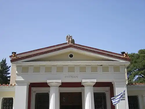 So wurde Adler 1878 mit der Ausarbeitung von Museumsplänen betraut, und nach der Überwindung größerer Schwierigkeiten und Intrigen konnte 1887 das Museum in Olympia[10] eröffnet werden. Trotz der bescheidenen finanziellen Verhältnisse und der deswegen nicht ausbleibenden Mängel in der Ausführung war es Adler gelungen, seine vielfältigen wissenschaftlichen Forschungen zu Olympia in ein anerkanntes architektonisches Zeugnis zu verwandeln. Der Museumsbau präsentiert sich als ein reines Bauwerk im Stil des Berliner Spätklassizismus. Es gilt als letzte Äußerung der Berliner Bauschule aus der Feder eines bekannten Architekten.
